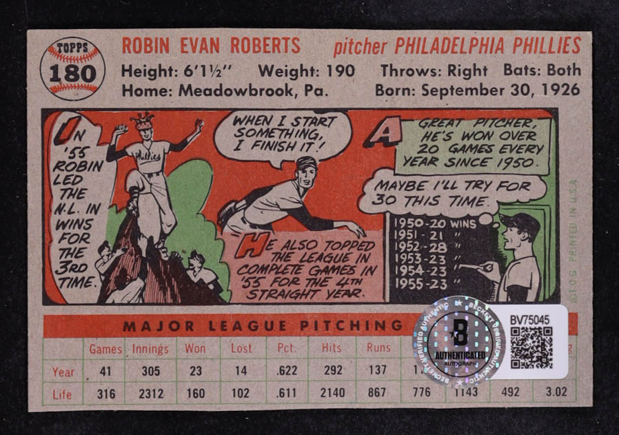 Robin Roberts Signed 1956 Topps #180 (Beckett)