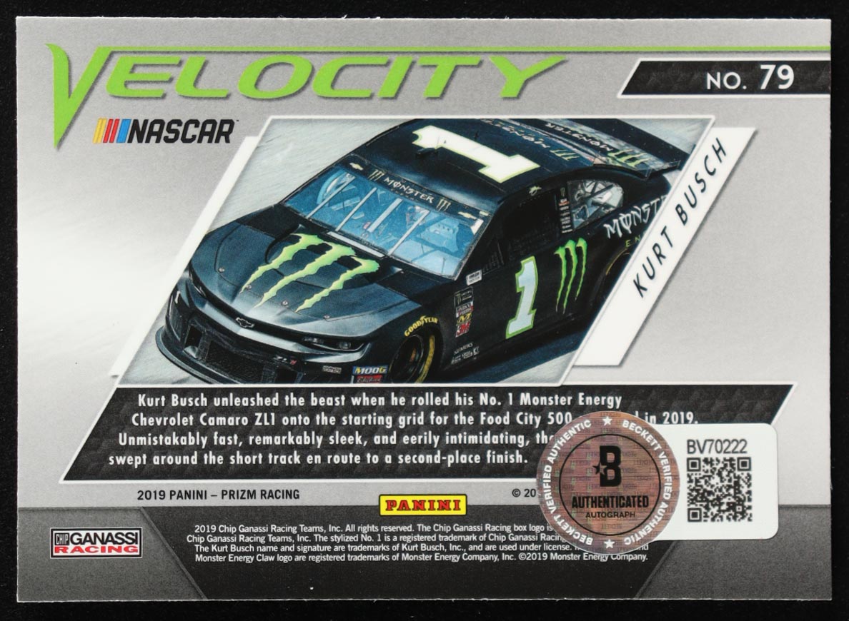 Kurt Busch Signed 2019 Panini Prizm #79 VEL (Beckett)