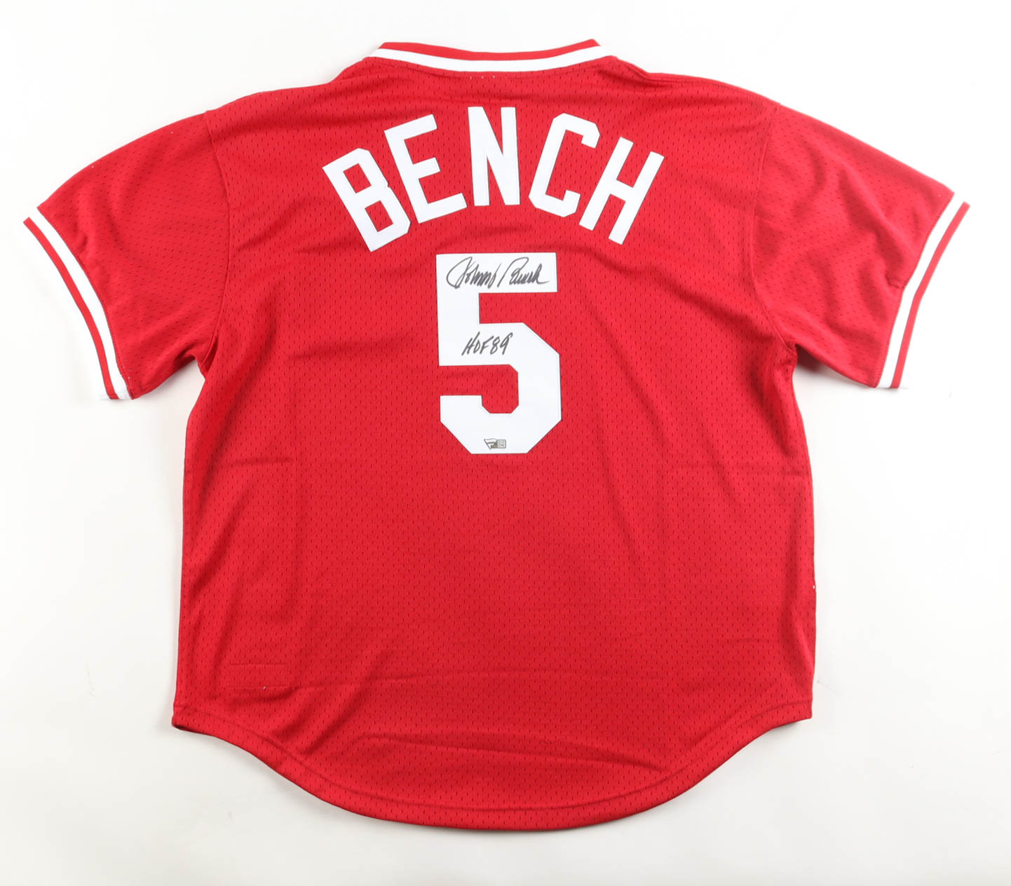 Johnny Bench Signed Reds Mitchell & Ness Authentic Jersey Inscribed "HOF 89" (Fanatics)
