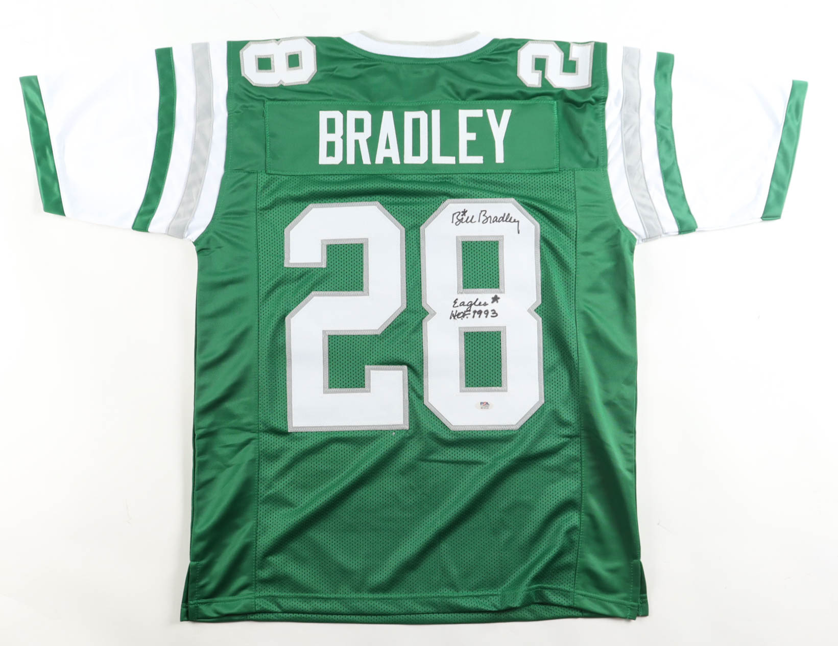 Custom jersey with everything sewn on, size XL. Hand-signed and inscribed by Bill Bradley (Philadelphia Eagles).