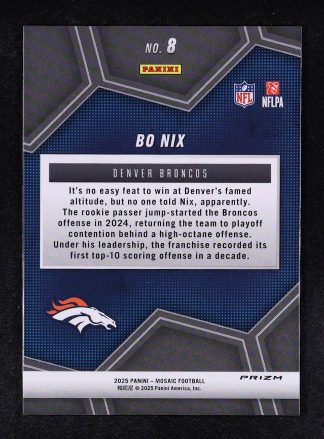Bo Nix 2025 Panini Mosaic Overdrive Silver #8