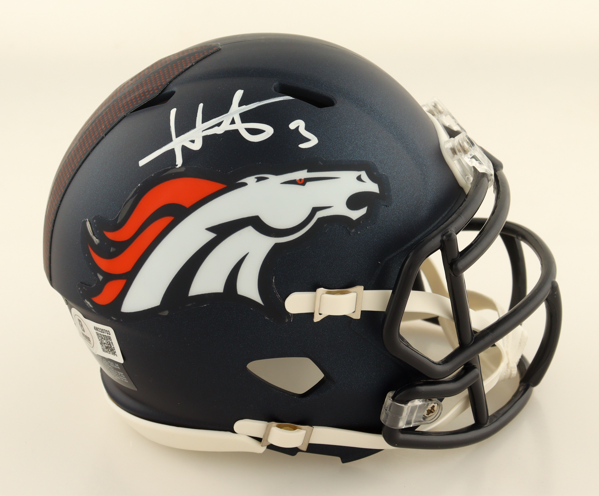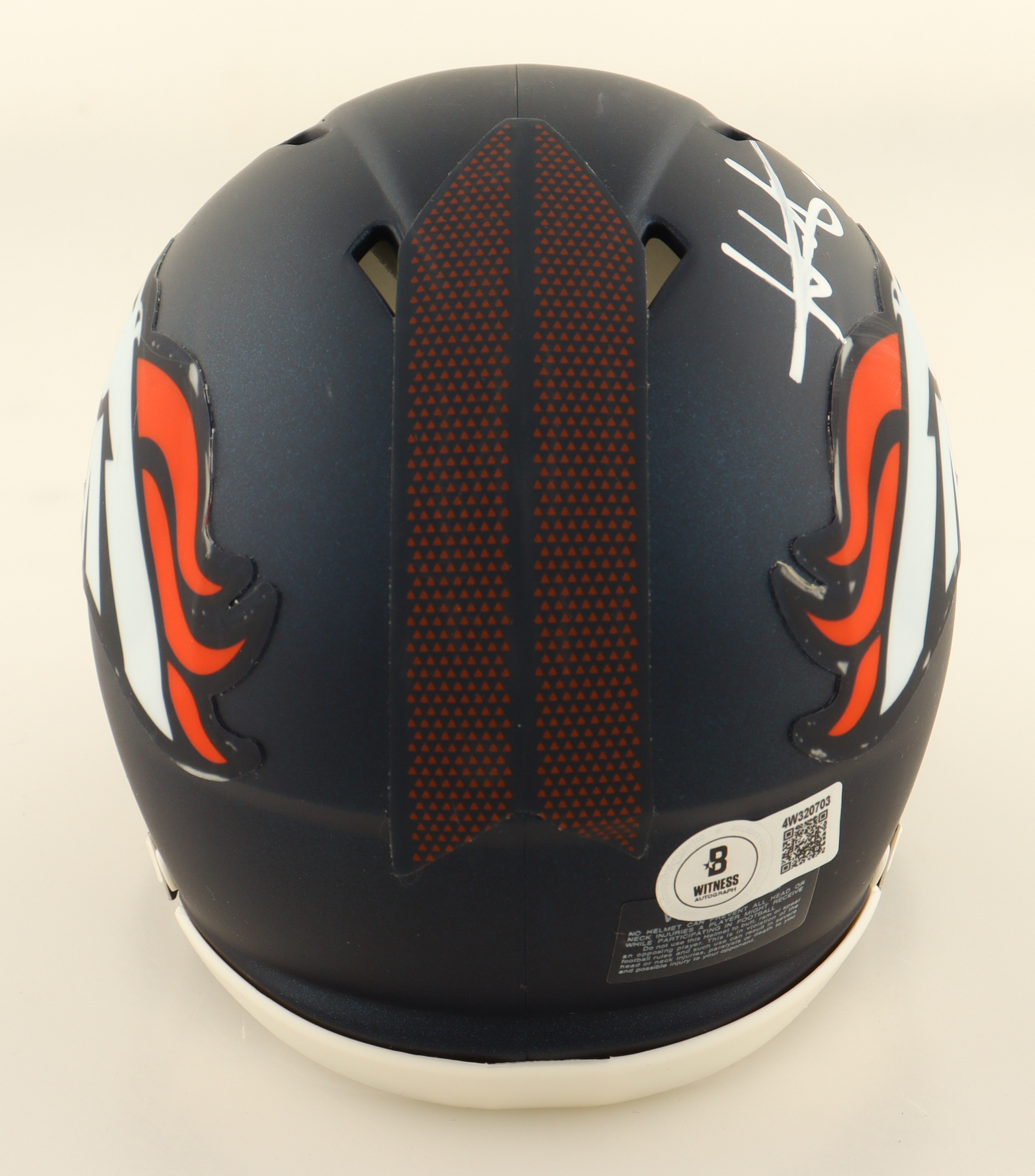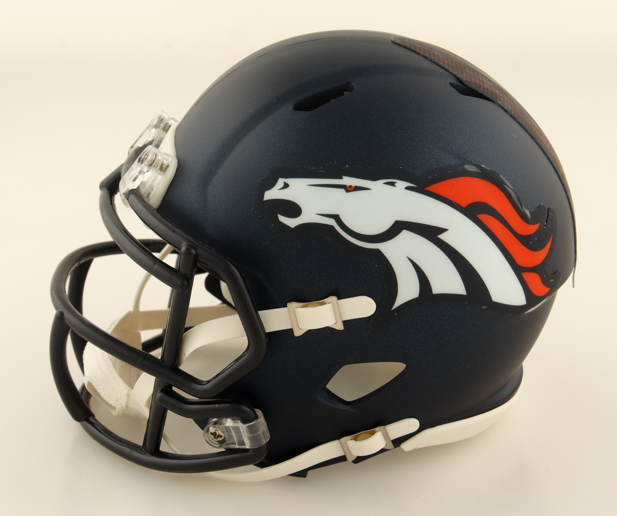 Riddell Denver Broncos Speed mini helmet. Hand-signed by Wil Lutz.