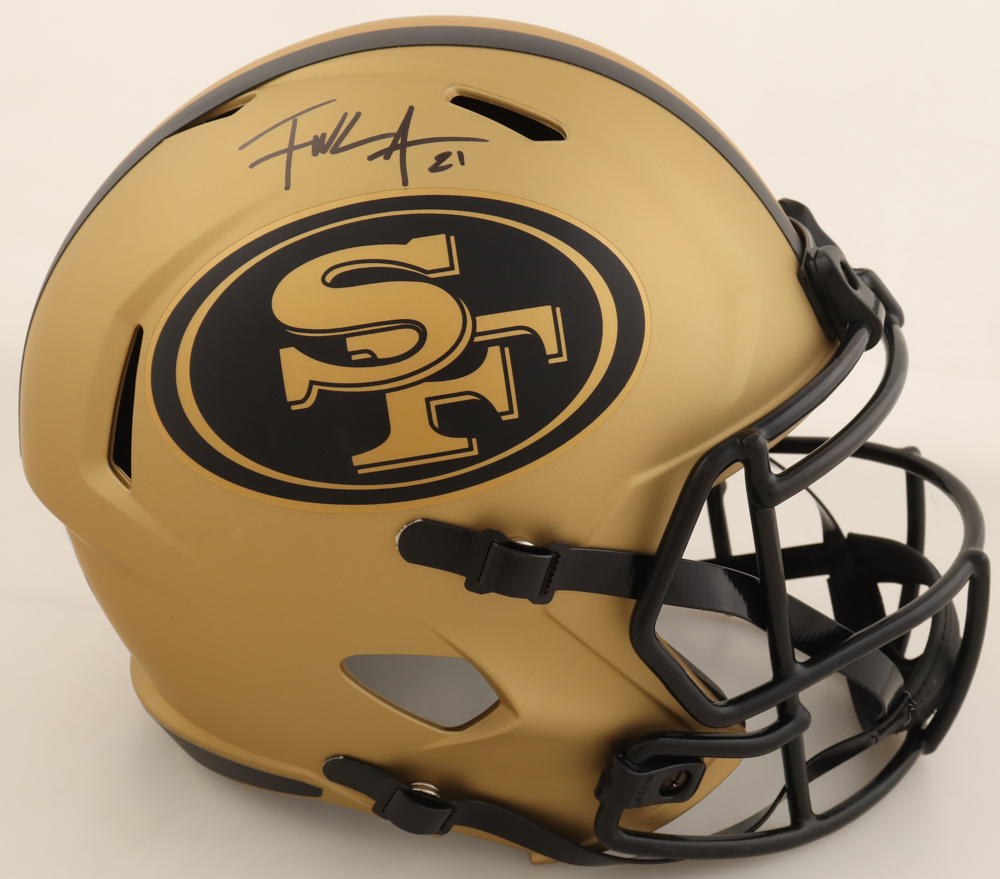 Riddell San Francisco 49ers Full-Size Rave Alternate Speed replica helmet has been hand-signed by Frank Gore.