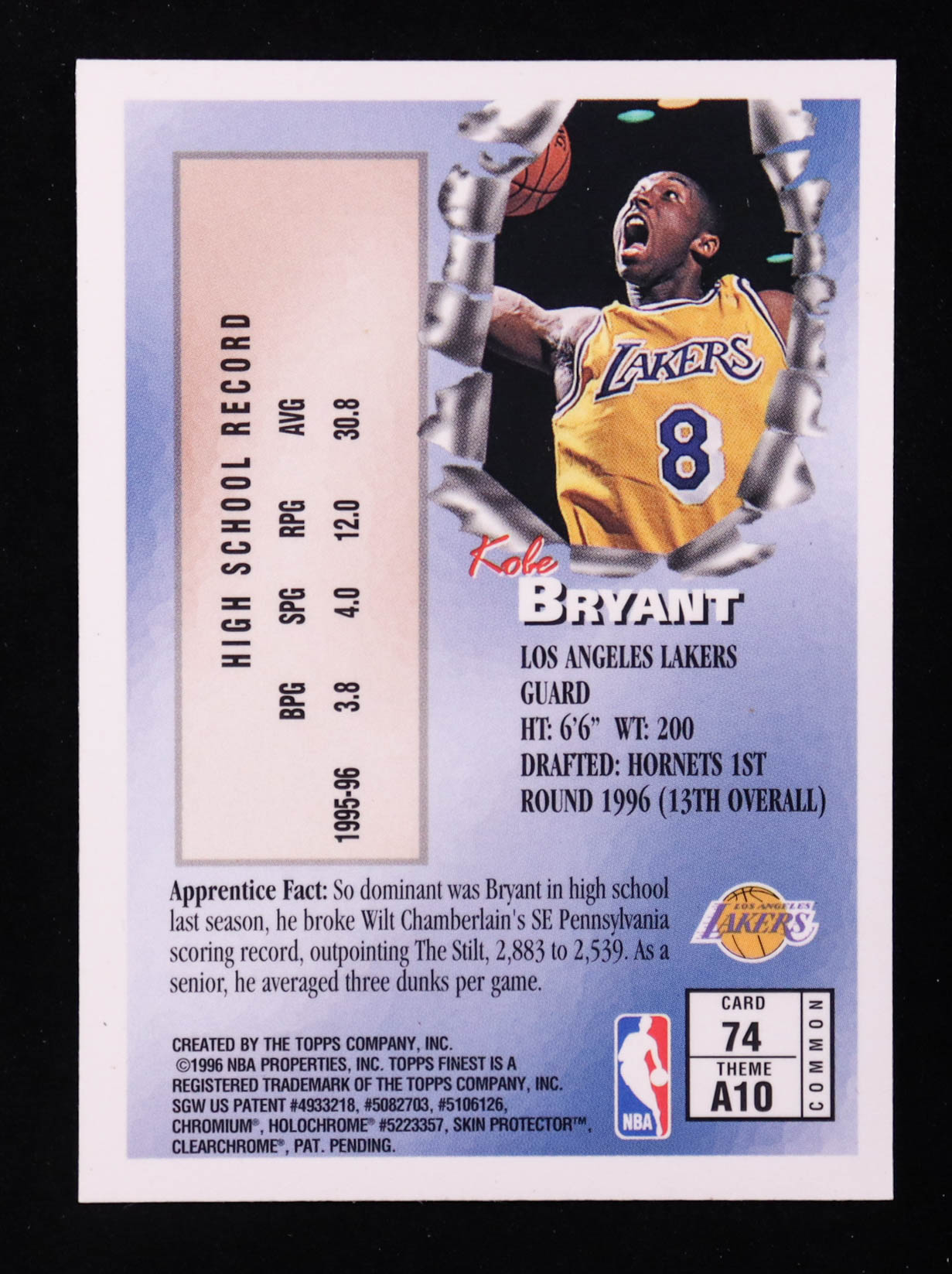 Kobe Bryant 1996-97 Finest #74 RC with Coating