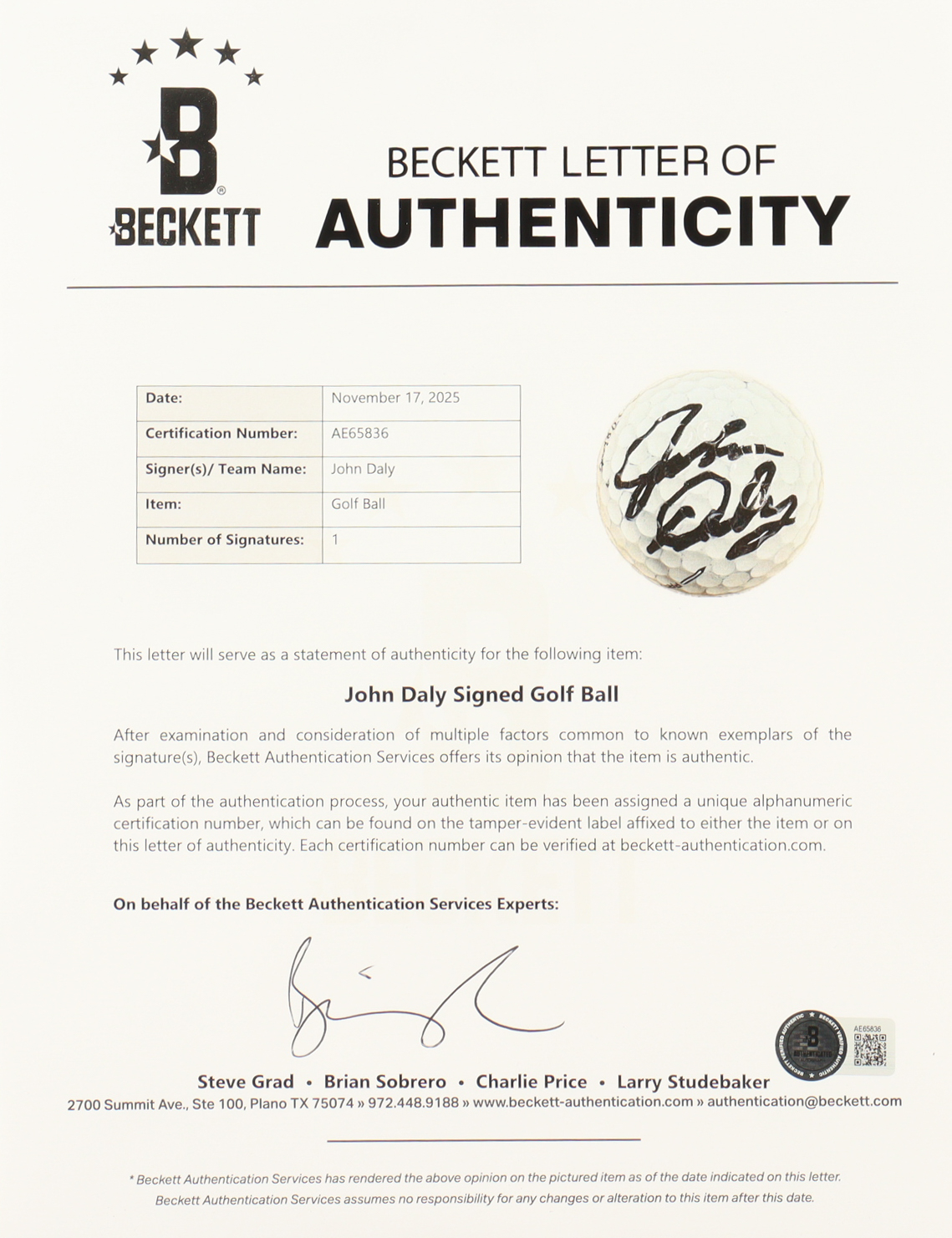 The autograph includes an official Beckett Authentication Services hologram and matching LOA for authenticity purposes.