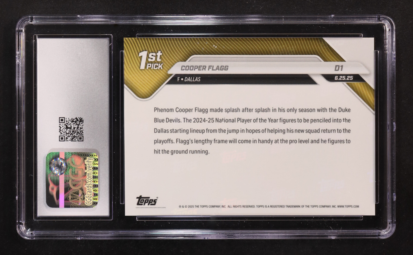 Cooper Flagg 2025 Topps Now #D1 NBA Draft RC (CGC 9)
