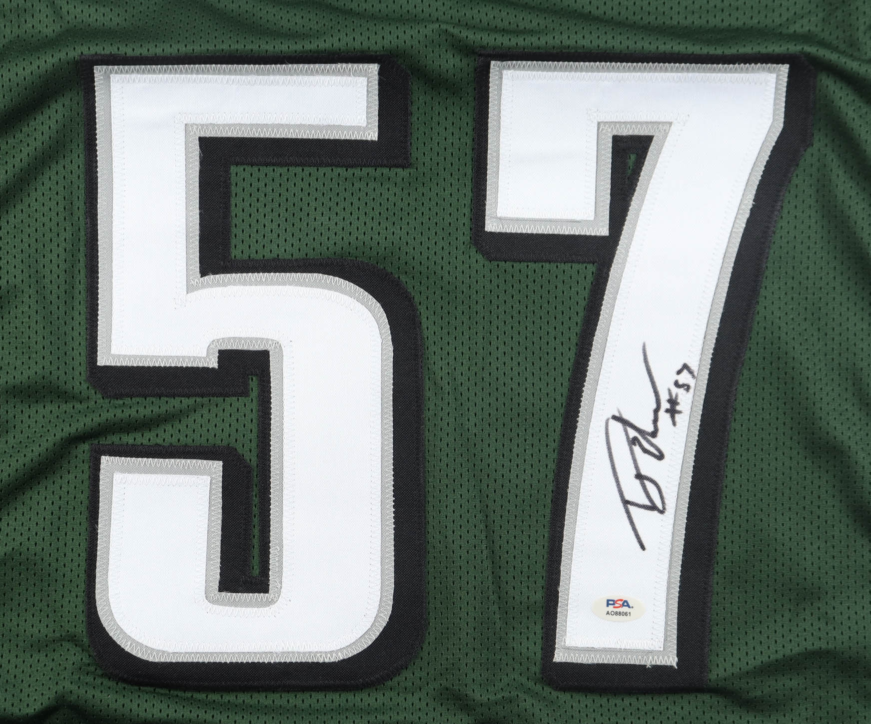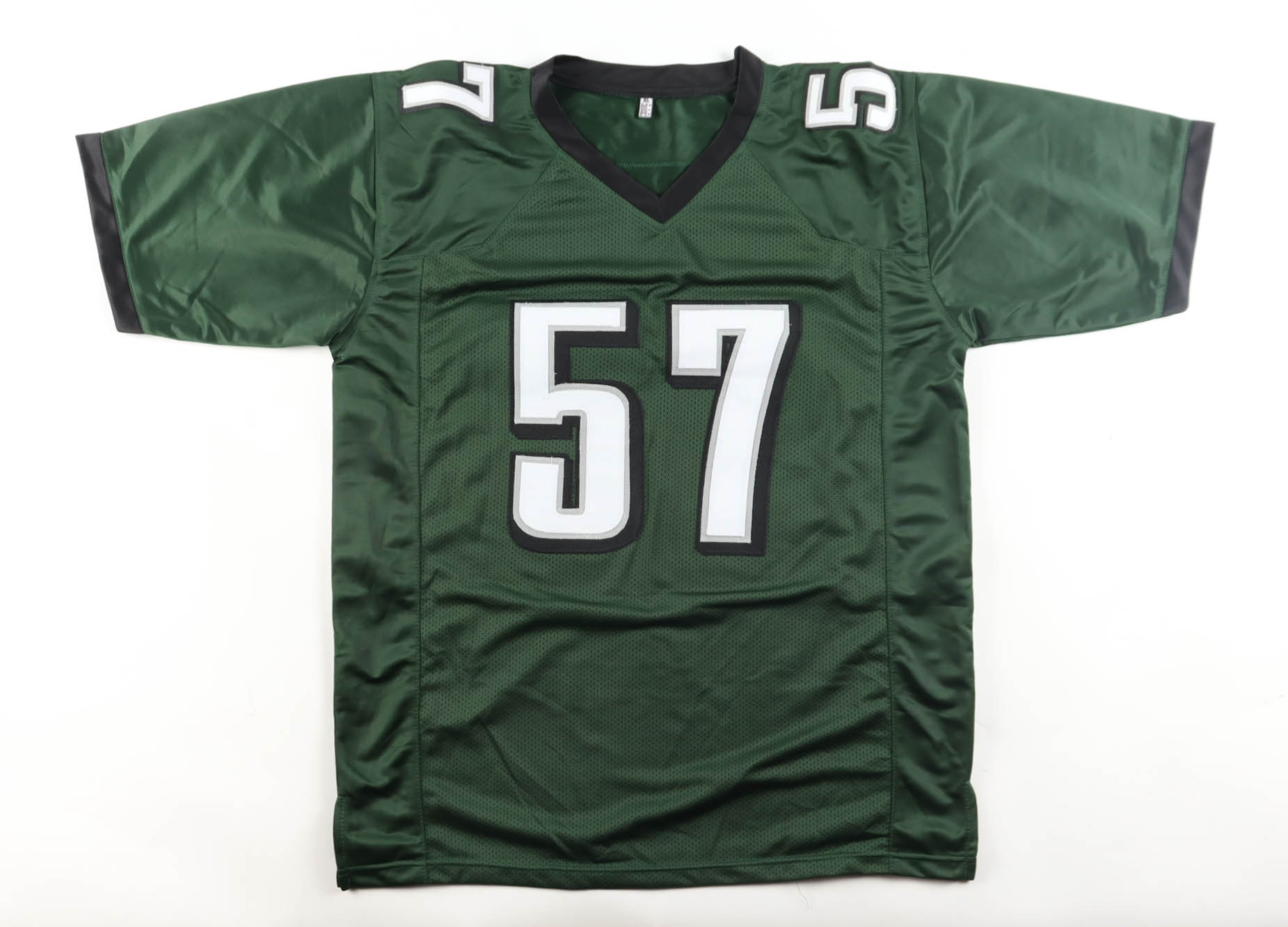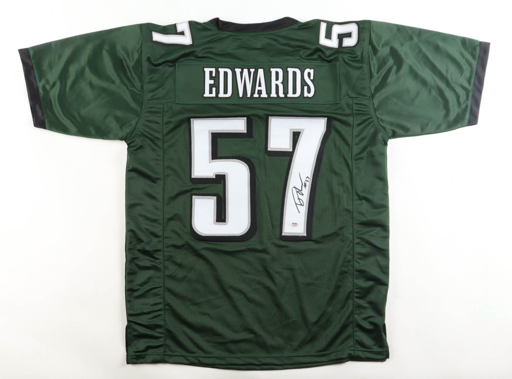 Custom jersey with everything sewn on, size XL. Hand-signed by T. J. Edwards