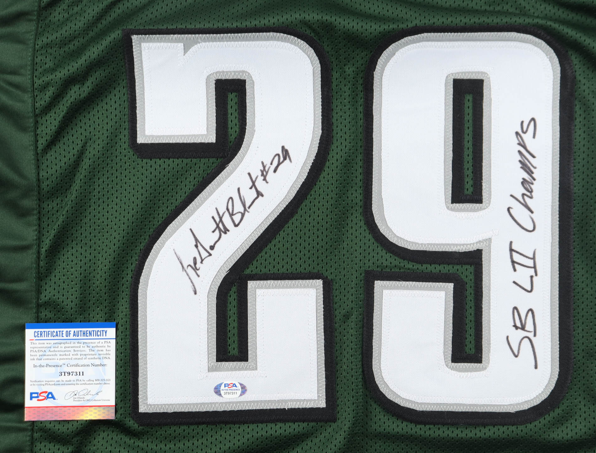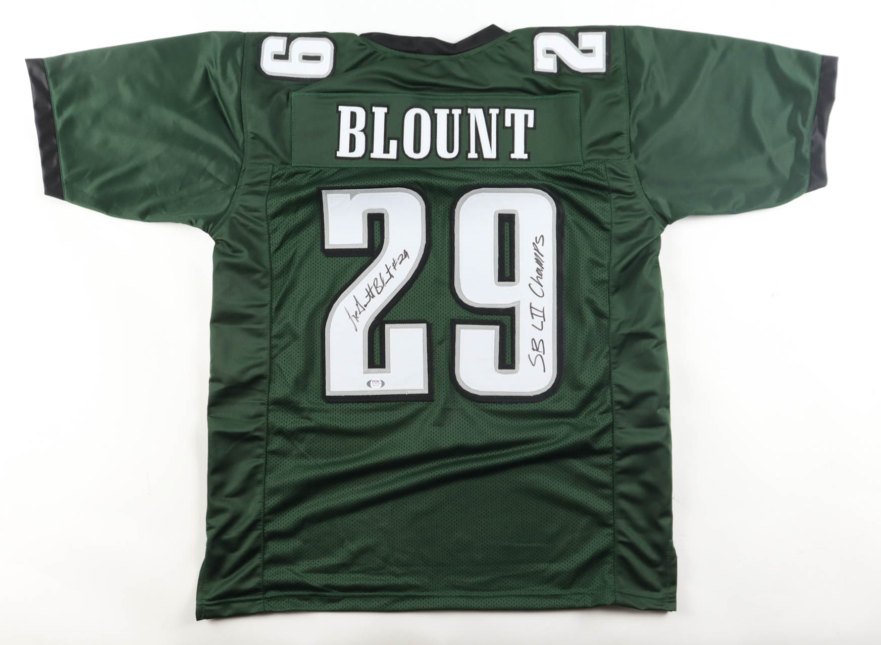 Custom jersey with everything sewn on, size XL. Hand-signed and inscribed by LeGarrette Blount (Philadelphia Eagles).