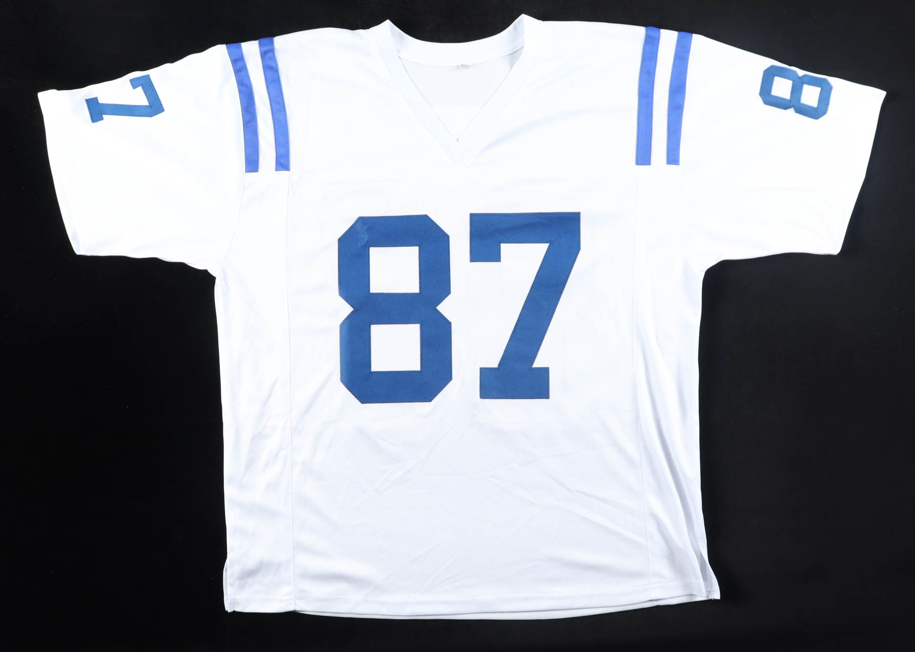Custom jersey with everything sewn on, size XL. Hand-signed by Reggie Wayne.