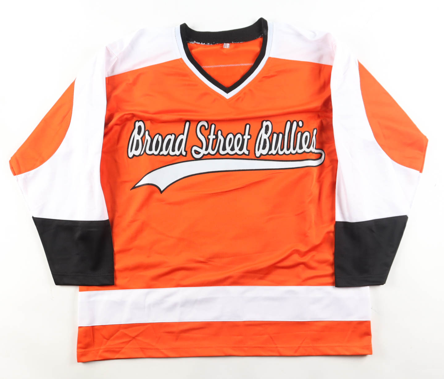 Custom jersey with everything sewn on, size XL. Hand-signed by Dave Schultz (Philadelphia Flyers).
