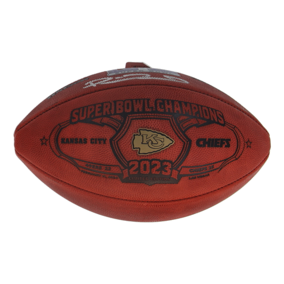 Wilson "The Duke" Super Bowl LVIII logo commemorative full-size NFL football. Hand-signed by Patrick Mahomes (Kansas City Chiefs).