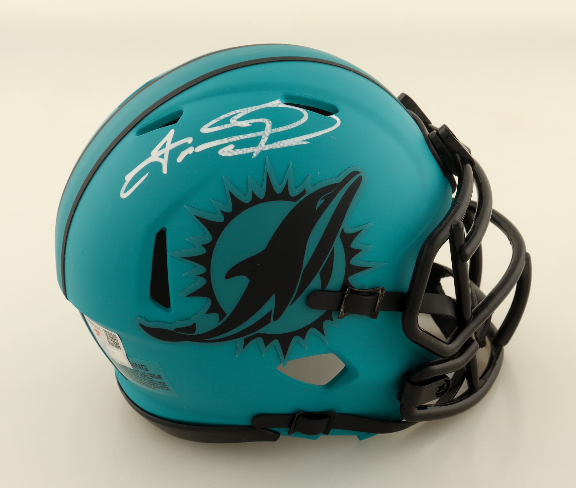 Riddell Miami Dolphins Rave Alternate Speed Mini Helmet. Hand-signed by Tua Tagovailoa. Please note that the signature shows signs of spotting.