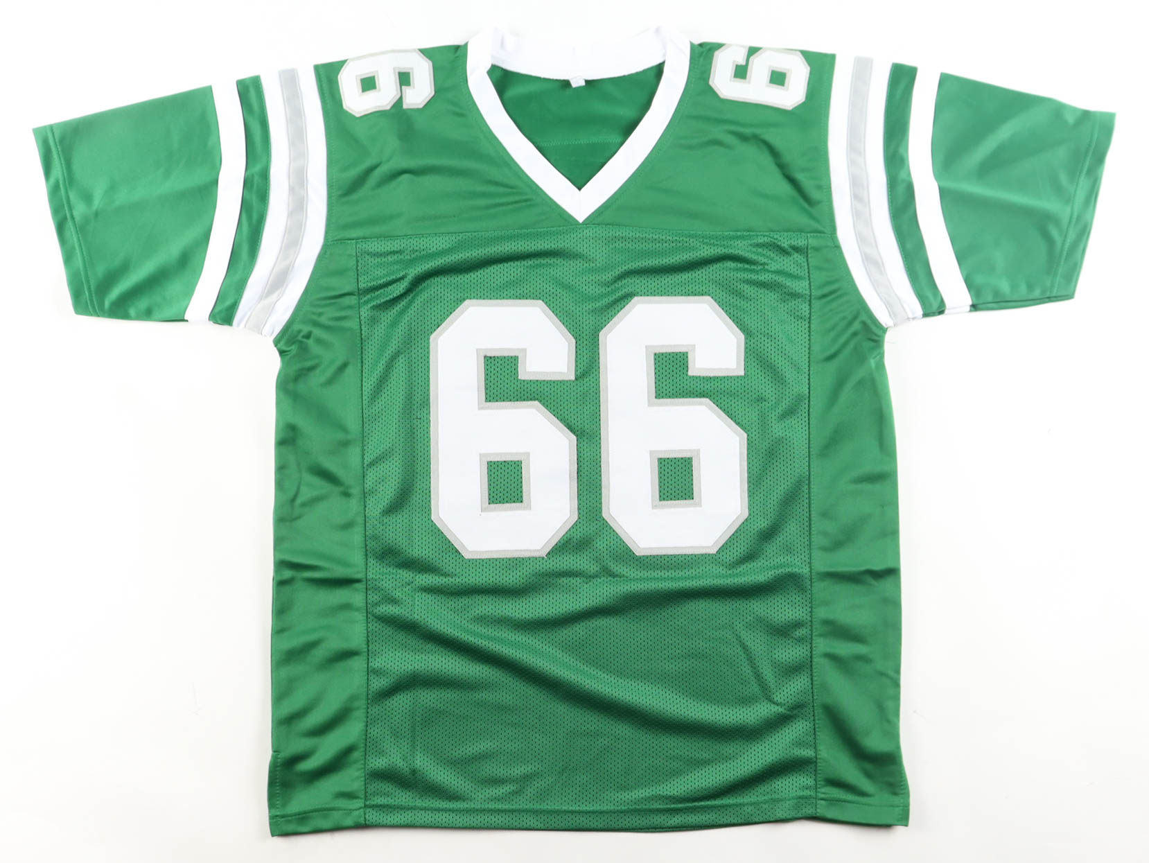 Custom jersey with everything sewn on, size XL. Hand-signed and inscribed by Bill Bergey (D. 2024, Philadelphia Eagles). Please note, the signature and inscriptions have bled.