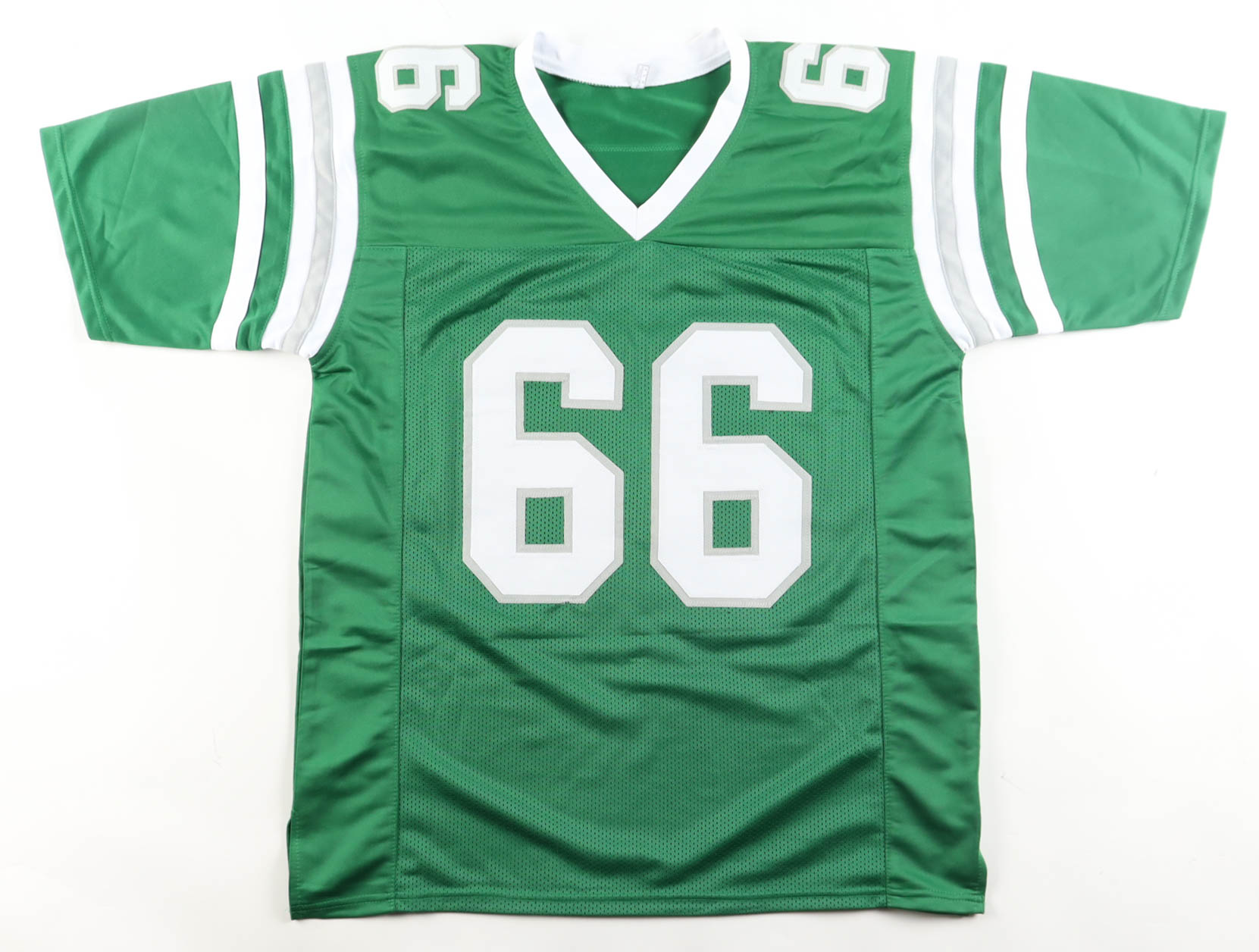 Custom jersey with everything sewn on, size XL. Hand-signed and inscribed by Bill Bergey (D. 2024, Philadelphia Eagles). Please note, the signature and inscriptions have bled.