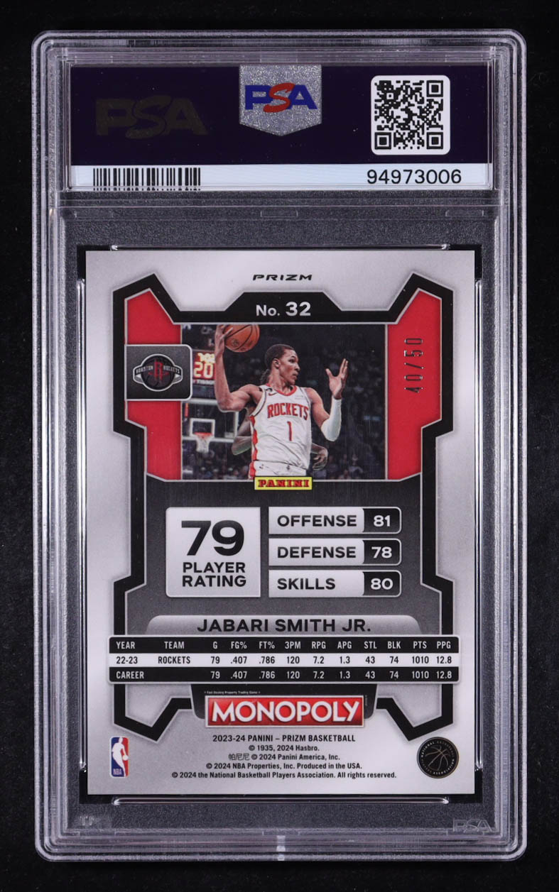 Jabari Smith Jr. 2023-24 Panini Monopoly Purple Millionaire Shimmer Prizm #32 #40/50 (PSA 8)