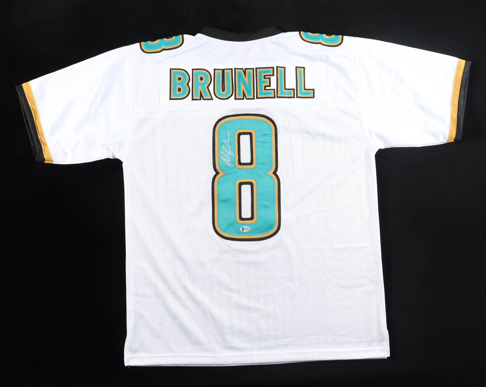 Custom jersey with everything sewn on, size L. Hand-signed by Mark Brunell.