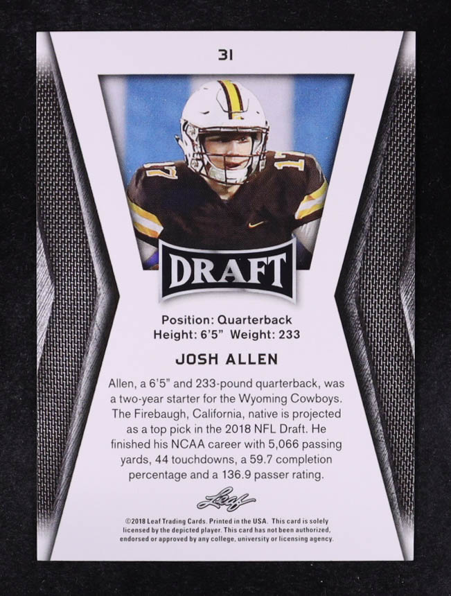 Josh Allen 2018 Leaf Draft Gold #31 RC