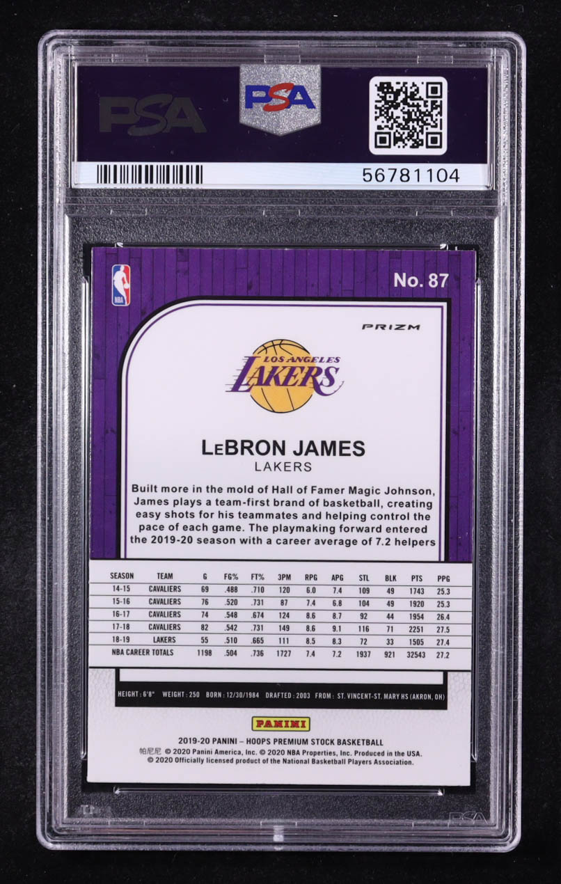 LeBron James 2019-20 Hoops Premium Stock Prizms Pulsar #87 (PSA 9)