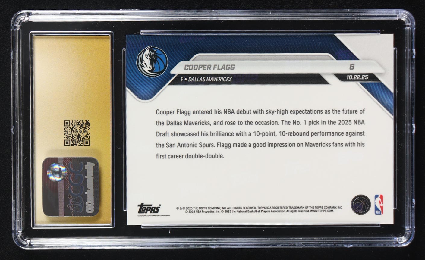 Cooper Flagg 2025-26 Topps Now #6 RC (CGC 10 | Pristine Black Label)