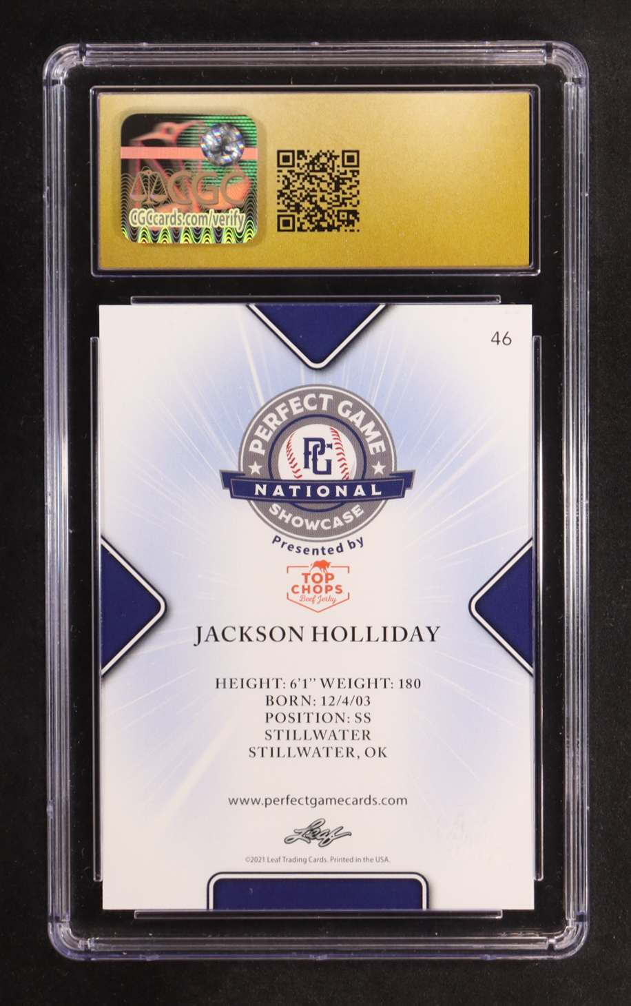 Jackson Holliday 2021 Leaf Perfect Game National Showcase #46 RC (CGC Pristine 10)