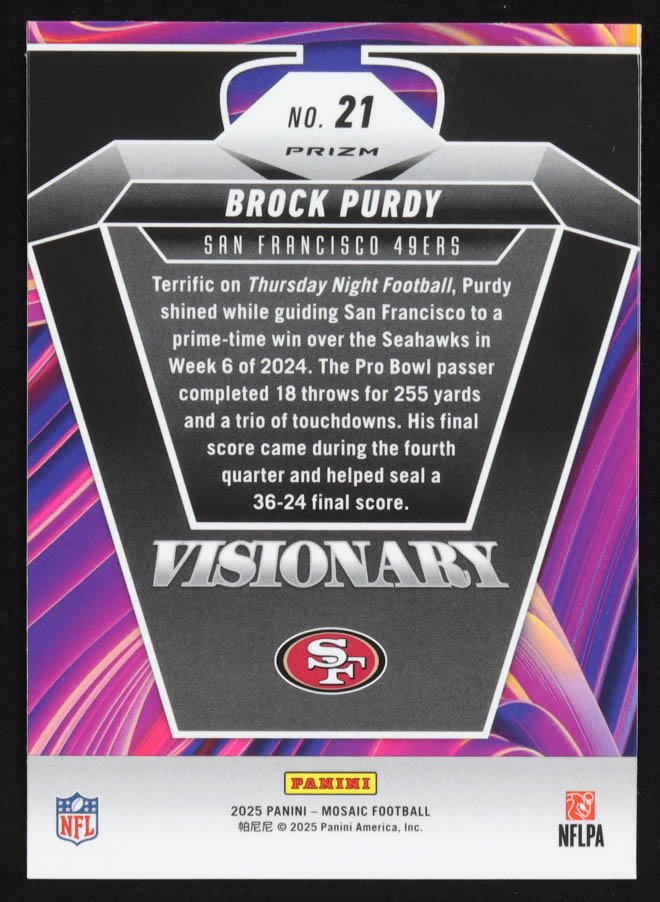 Brock Purdy 2025 Panini Mosaic Visionary #21