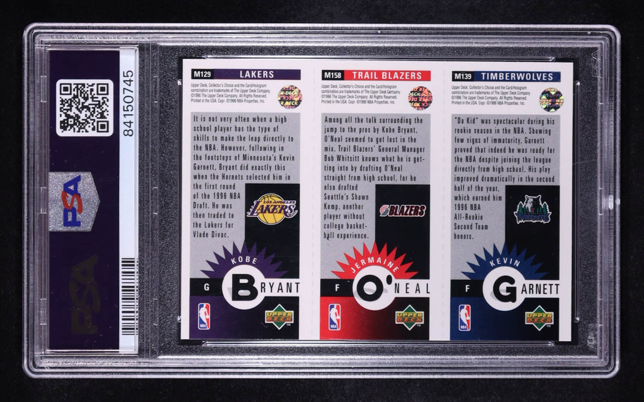 Kobe Bryant RC / Jermaine O'Neal RC / Kevin Garnett 1996-97 Collector's Choice Mini-Cards #M129 (PSA 8)