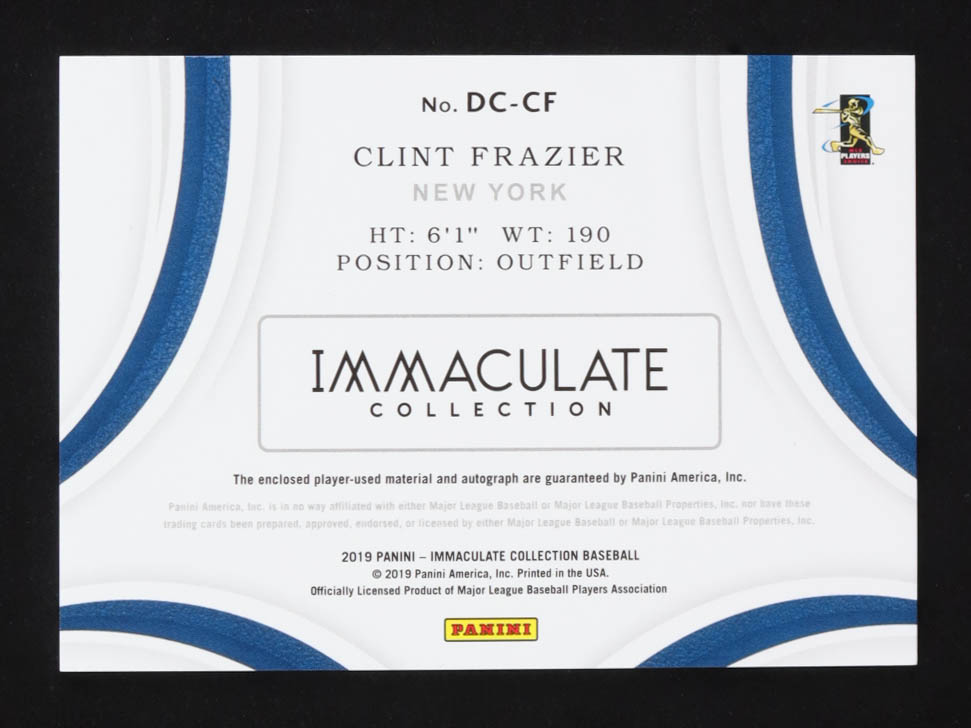 Clint Frazier 2019 Immaculate Collection Dugout Collection Dual Memorabilia Autographs #30 #16/25
