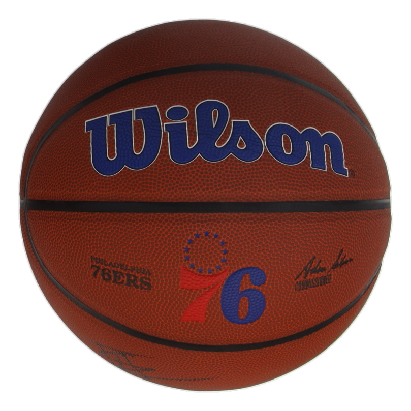 Wilson Philadelphia 76ers logo full-size basketball. Hand-signed by V. J. Edgecombe (Philadelphia 76ers).