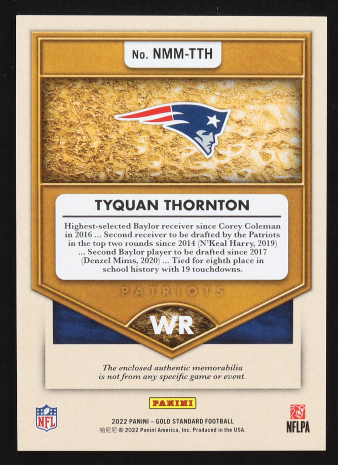 Tyquan Thornton 2022 Panini Gold Standard Newly Minted Memorabilia #24 #396/399 RC