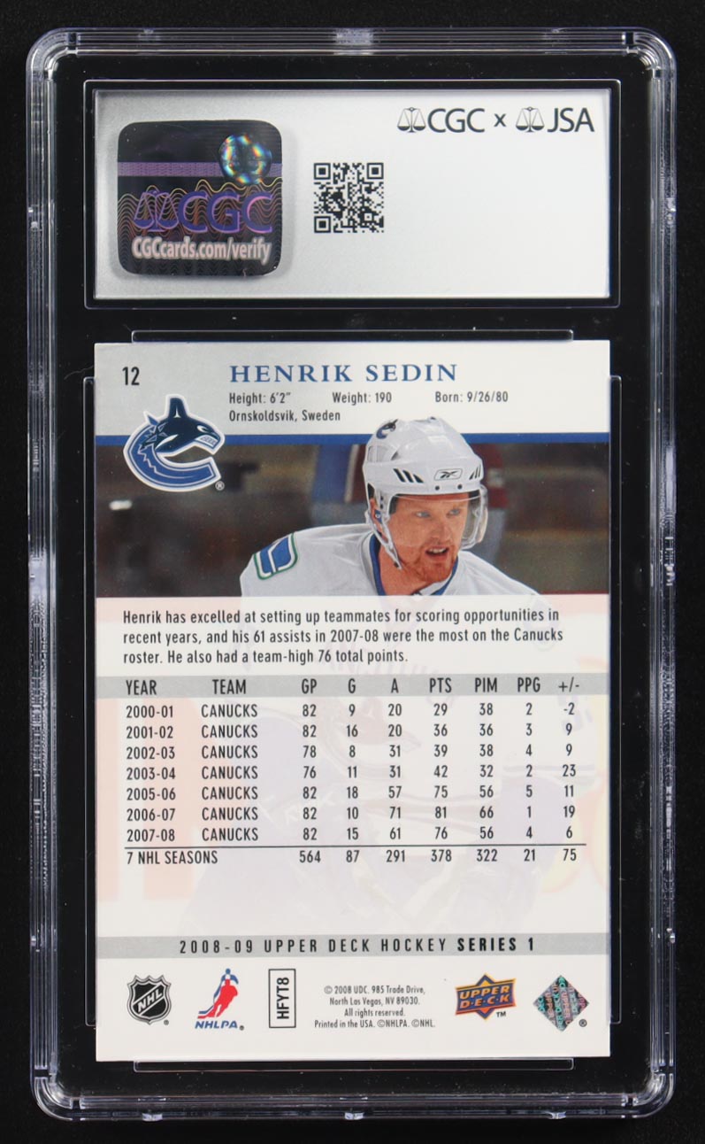 Henrik Sedin Signed 2008-09 Upper Deck Series 1 #12 (CGC | Autograph Graded CGC 9)