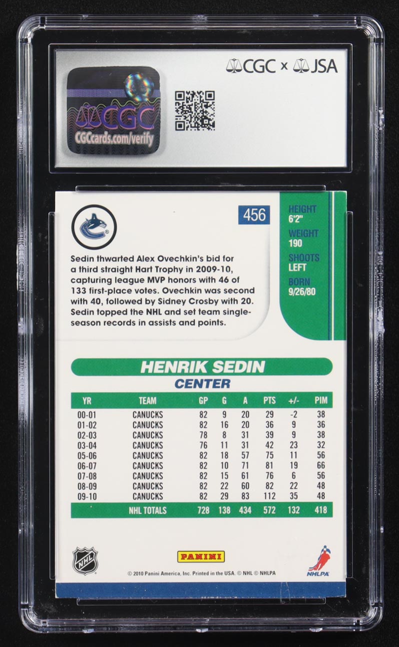 Henrik Sedin Signed 2010-11 Panini Score #456 (CGC | Autograph Graded CGC 10)