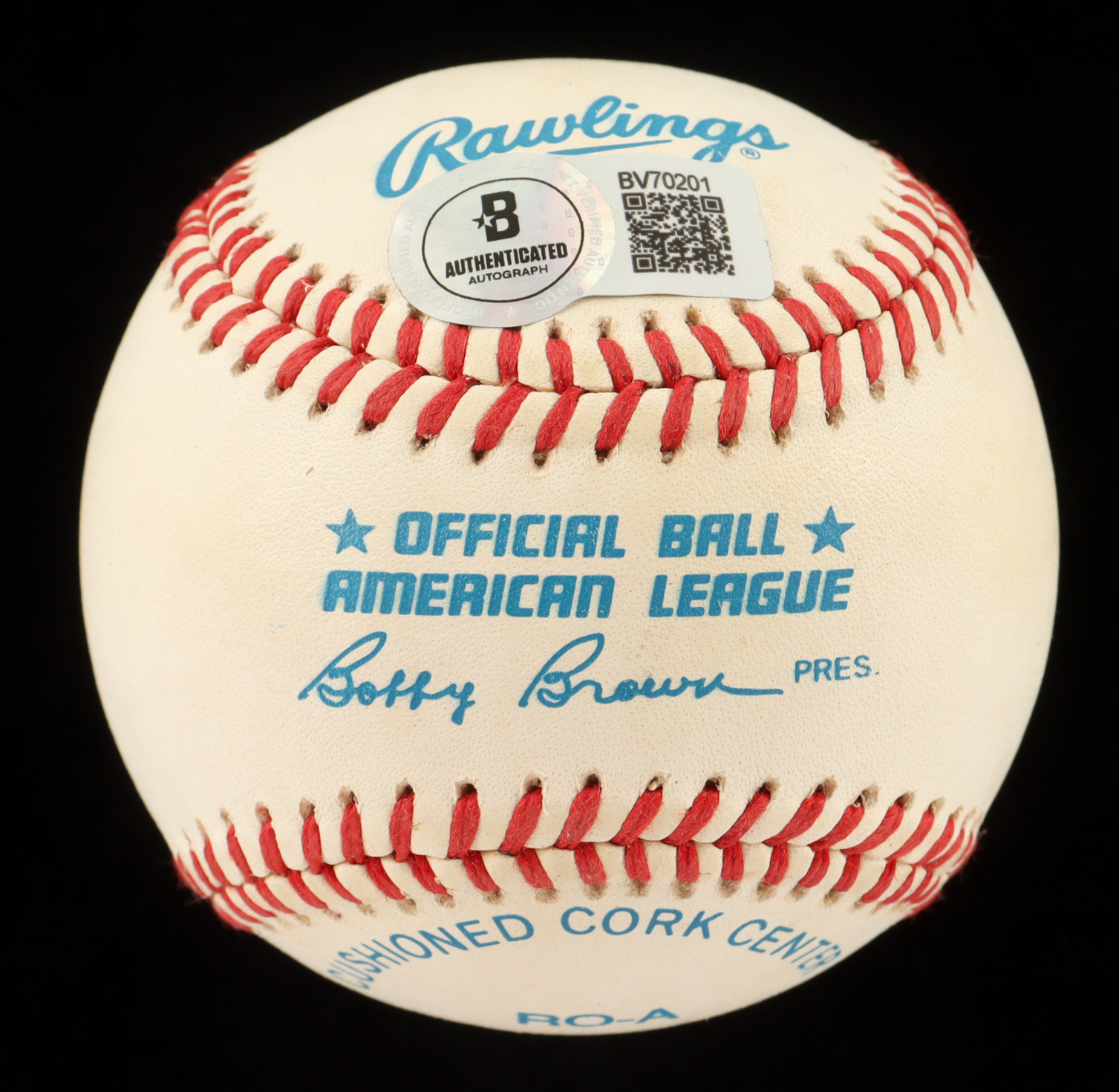 Rawlings Official American League Baseball. Hand-signed by Reggie Jackson (New York Yankees, HOF). Please note that the display case is included in the listing. Note that the baseball shows minor signs of toning and staining.