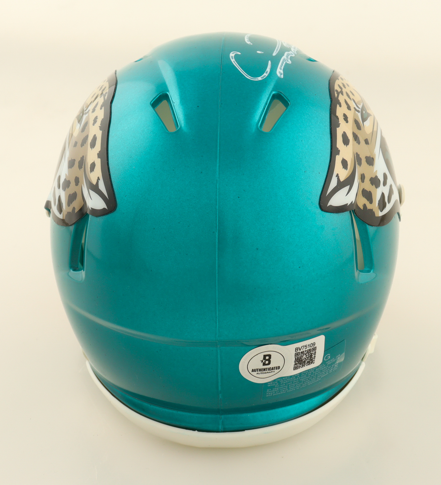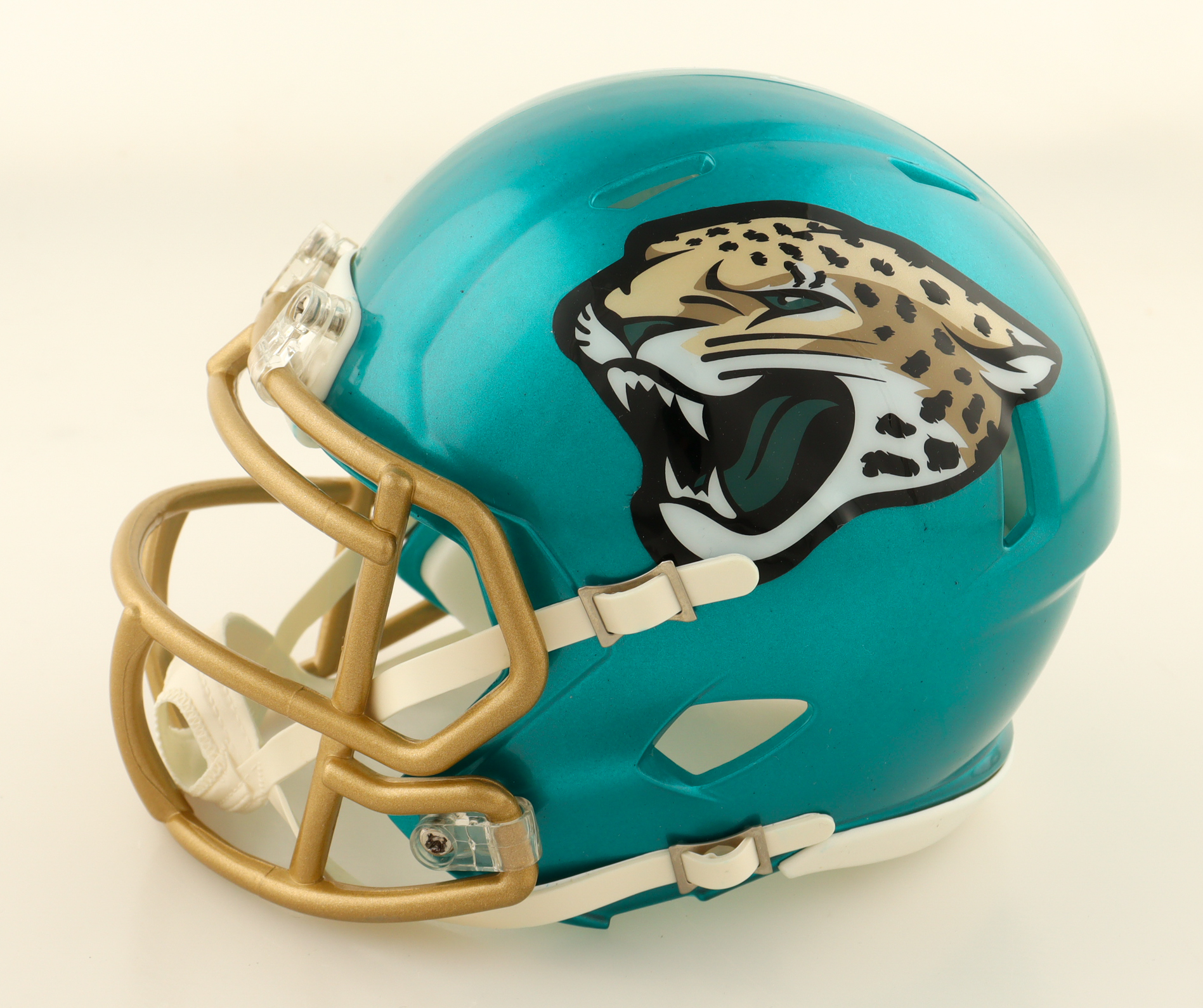 Riddell Jacksonville Jaguars Flash Alternate Speed mini helmet. Hand-signed by Calvin Ridley. Please note, the signature is smudged - see photos for more details.