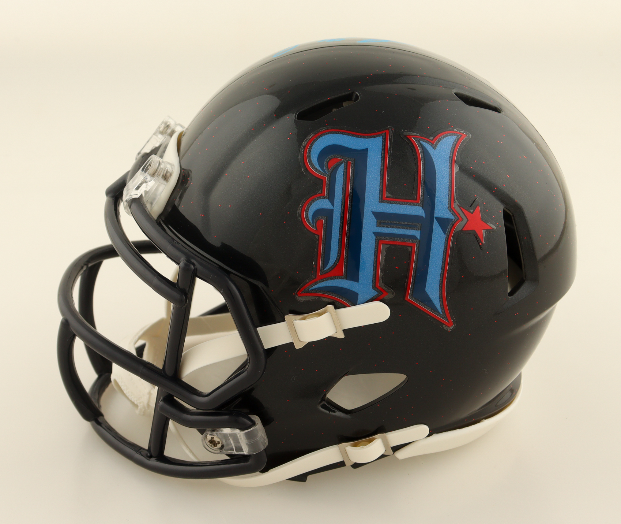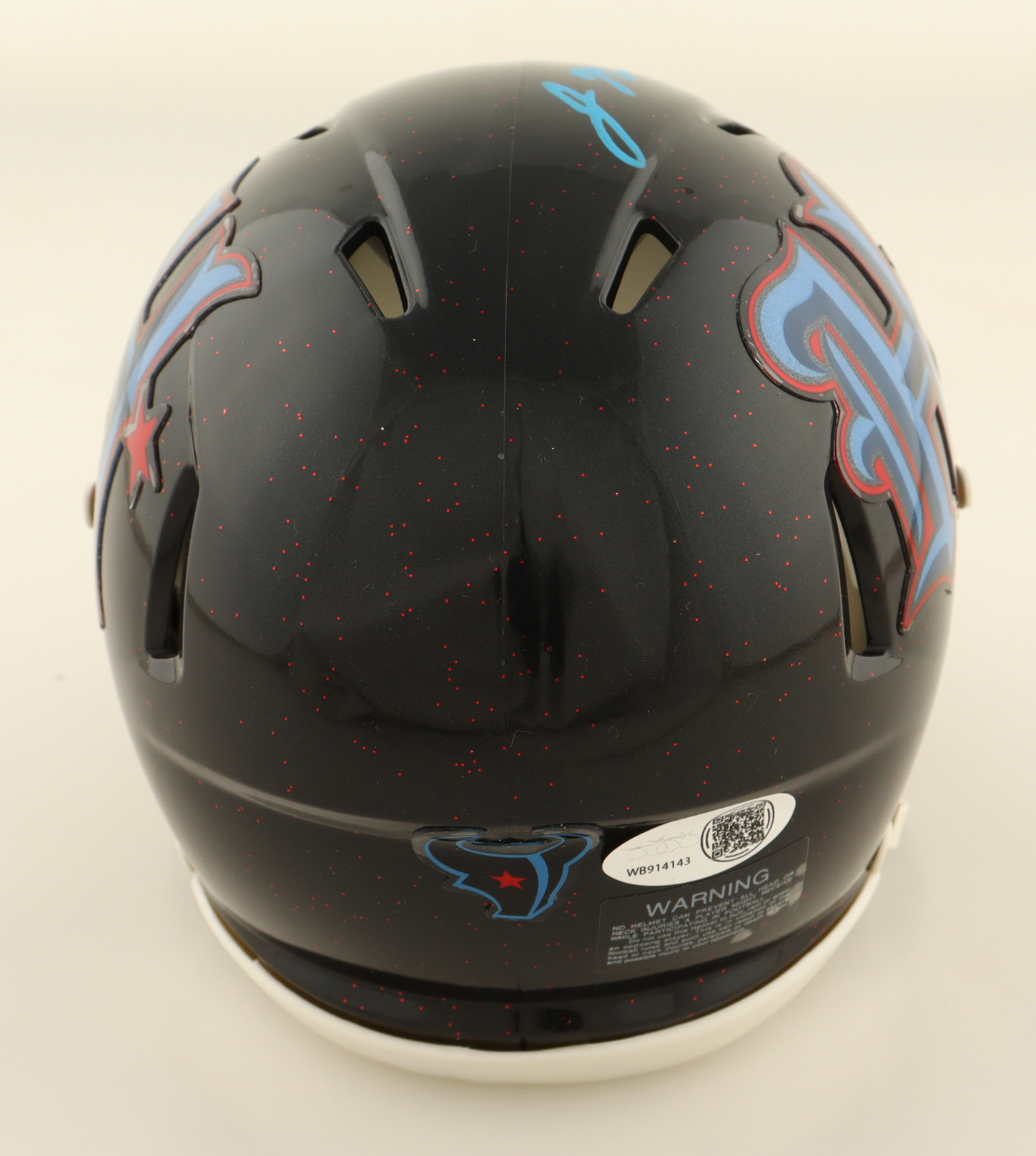 Riddell Houston Texans Speed Mini Helmet. Hand-signed by Jaylin Noel.