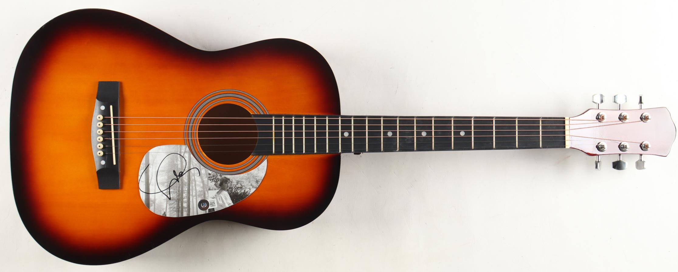 Acoustic Guitar measures approximately 37" in length and has been hand-signed by Taylor Swift on a CD insert that has been repurposed as a pickguard.