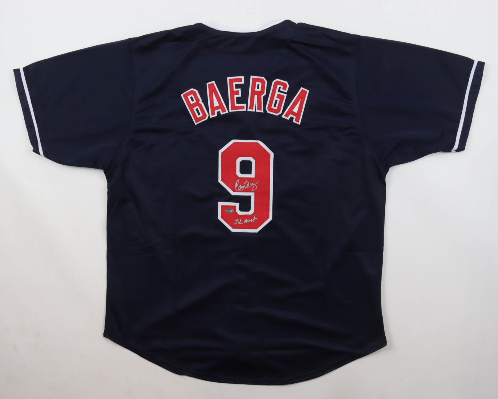 Custom jersey, everything is sewn on, size XL. Hand-signed and inscribed by Carlos Baerga.