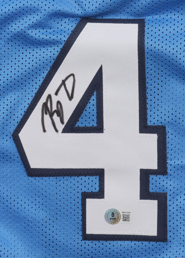 Custom jersey with everything sewn on, size XL. Hand-signed by RJ Davis.