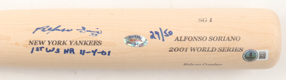 Alfonso Soriano Signed LE Sam Bat Player Model Baseball Bat Inscribed "1st WS HR 11-4-01" (Beckett)