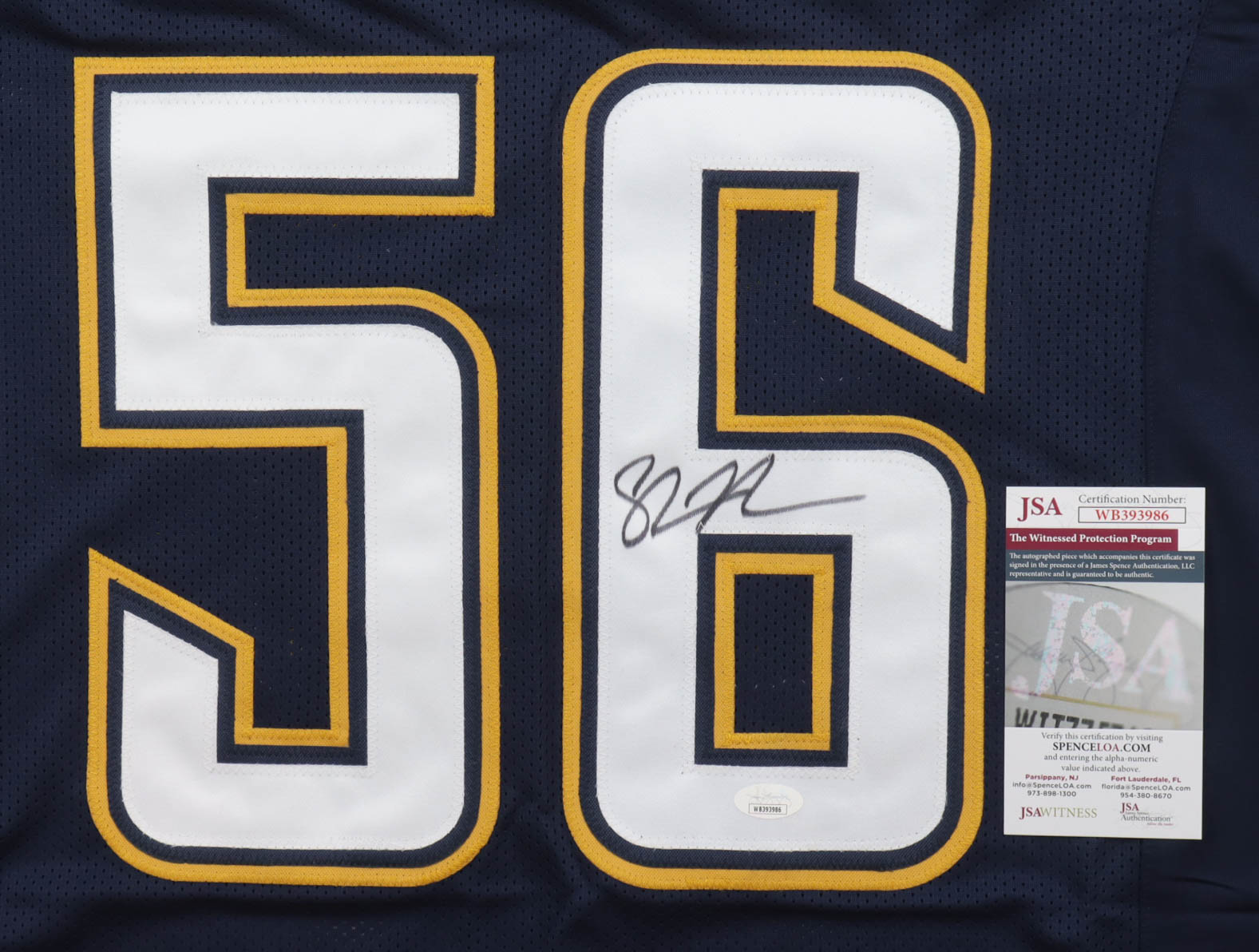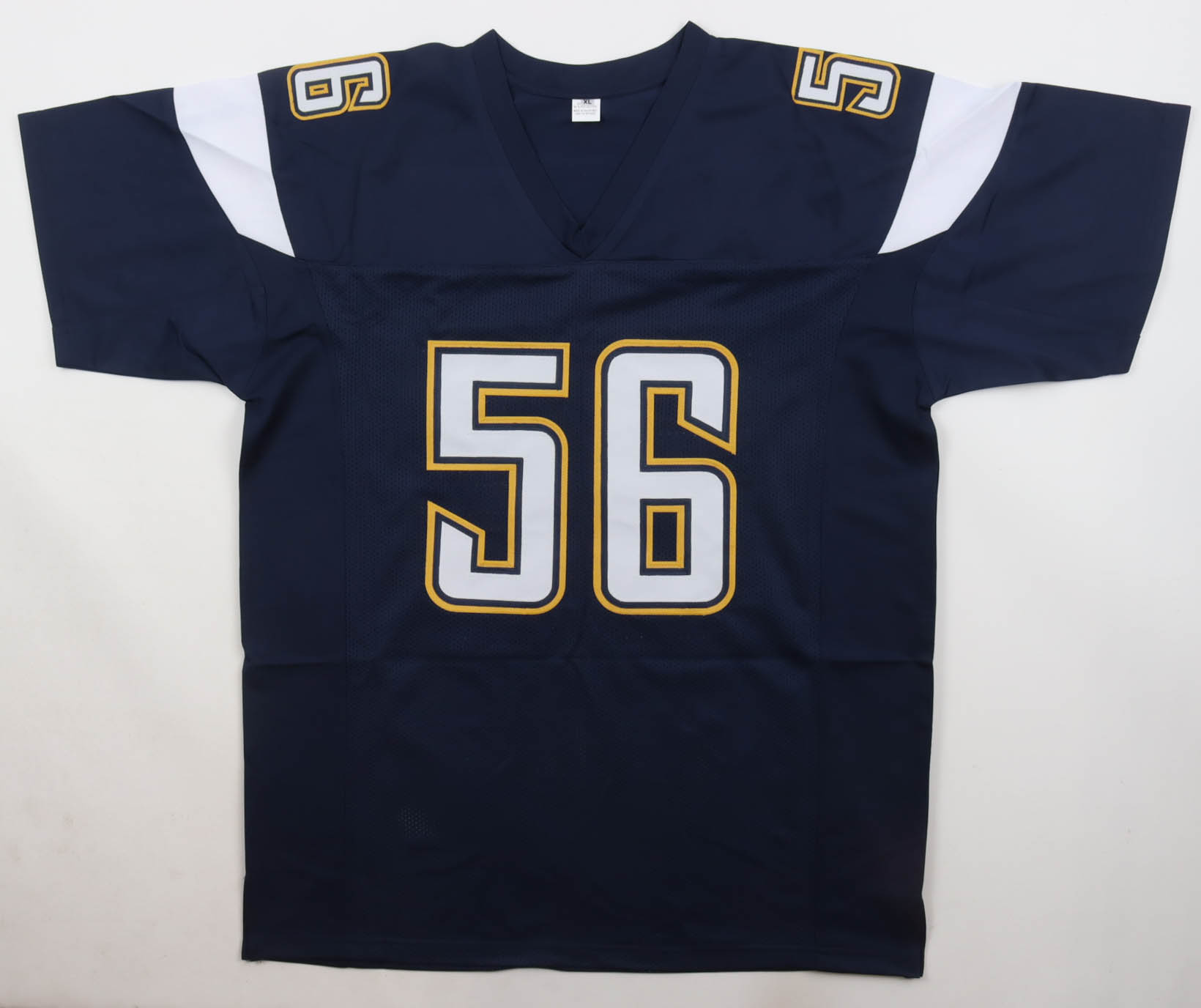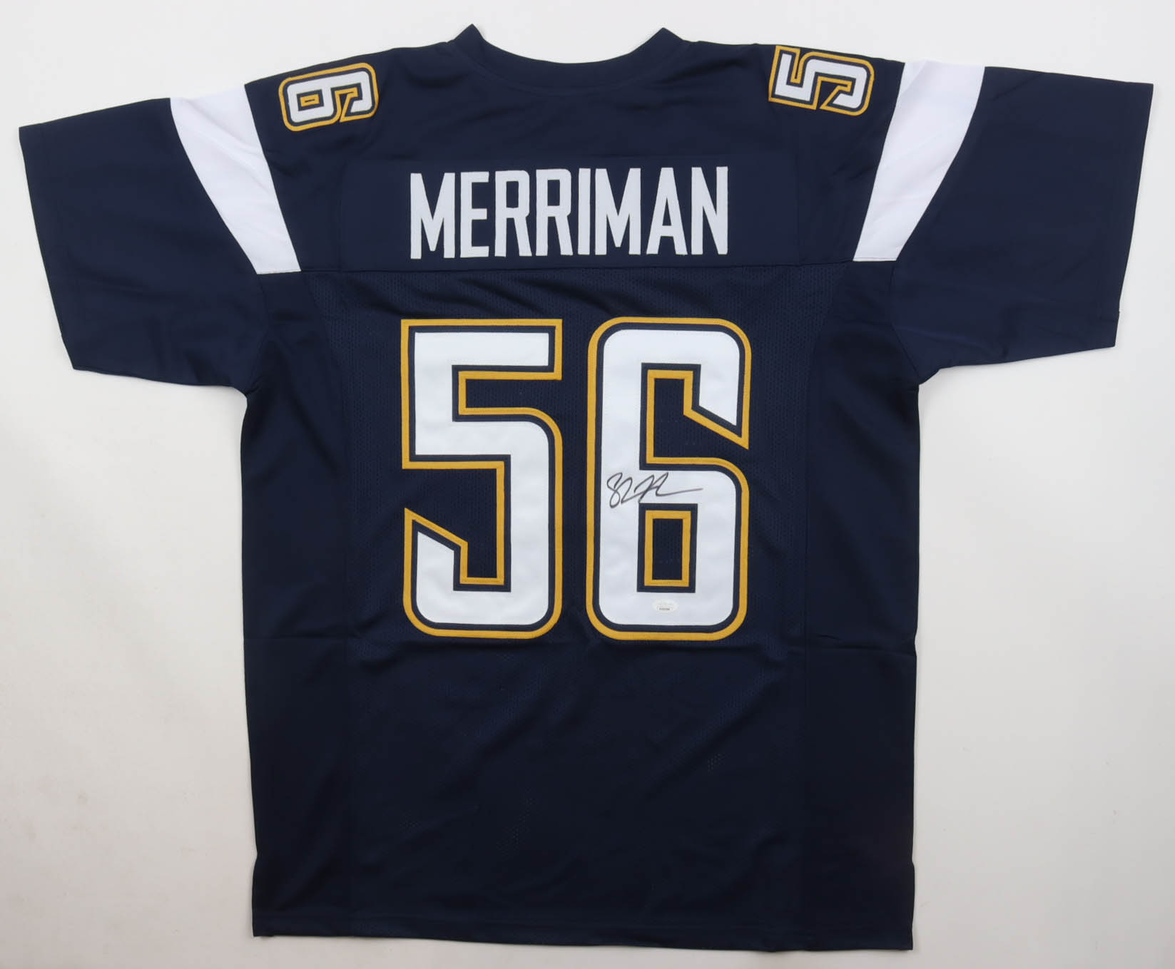 Custom jersey with everything sewn on, size XL. Hand-signed by Shawne Merriman (San Diego Chargers).