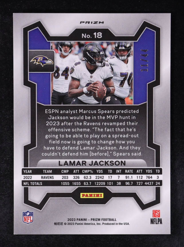 Lamar Jackson 2023 Panini Prizm Prizms Red and Yellow #18 #11/44