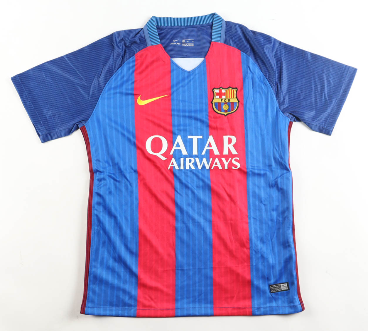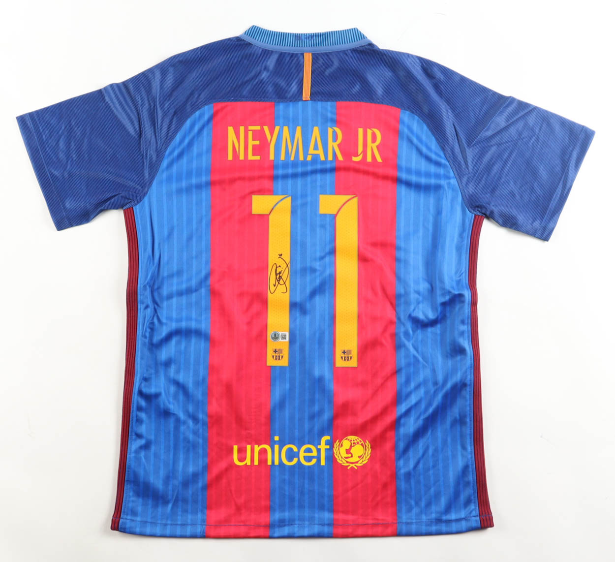 Nike jersey. Everything is pressed on, size M. Hand-signed by Neymar Jr. (Barcelona F.C.).