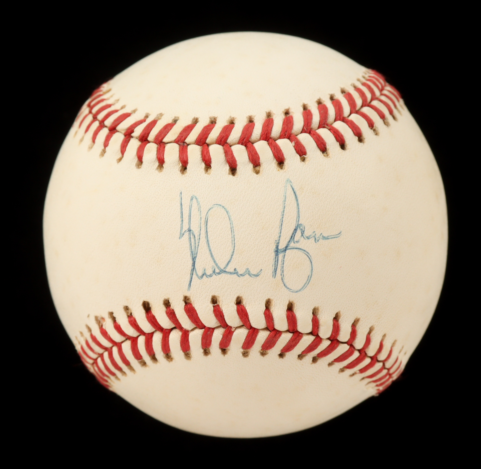 Rawlings Official American League Baseball. Hand-signed by Nolan Ryan (Texas Rangers, HOF). Please note, ball is naturally toned. Please see photos for more details.