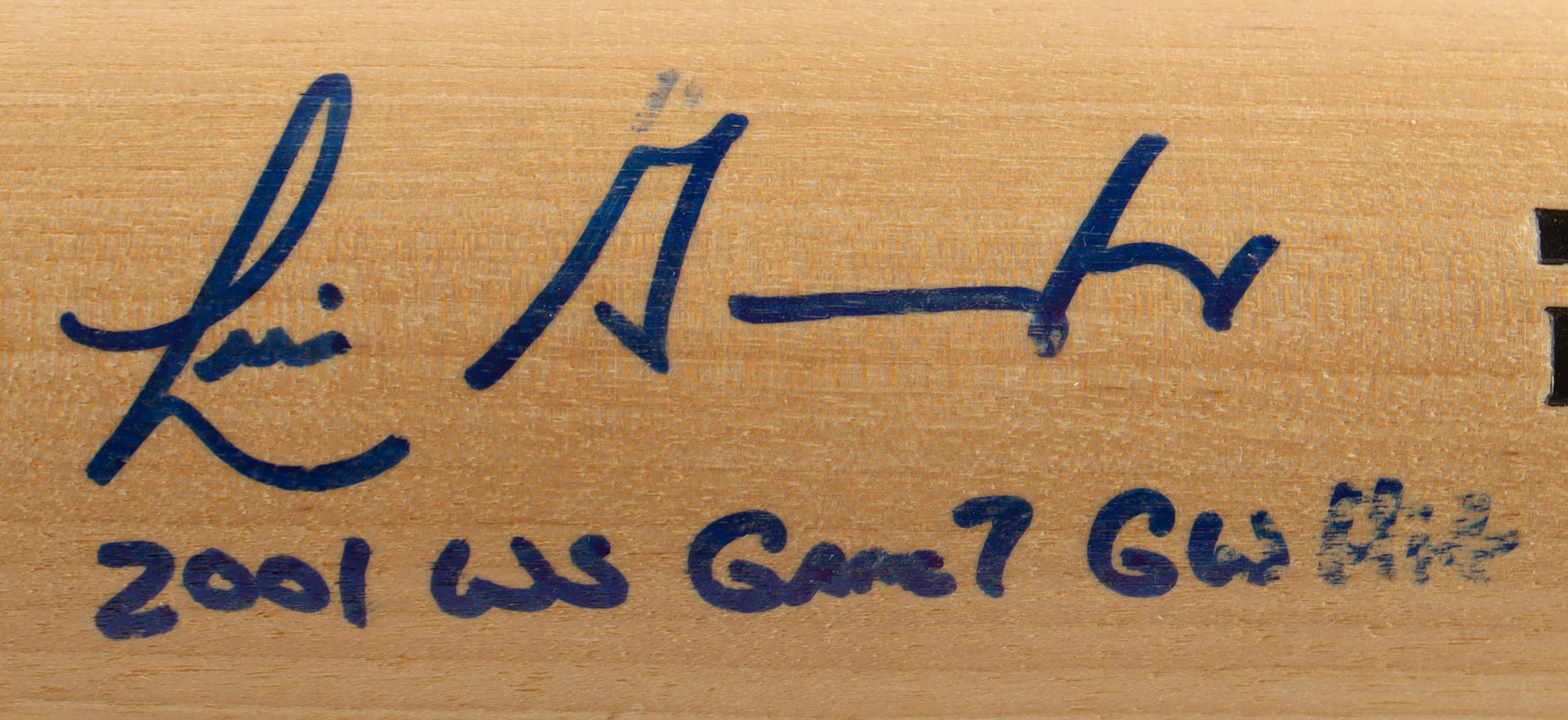 Genuine Louisville Slugger baseball bat has been hand-signed and inscribed by Luis Gonzalez (Arizona Diamondbacks). Please note the signature is smudged, see photos for more details.