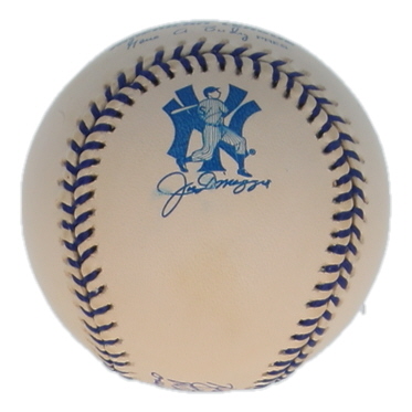 Rawlings Official American League Joe DiMaggio commemorative baseball. Hand-signed and inscribed by Hank Bauer (New York Yankees).