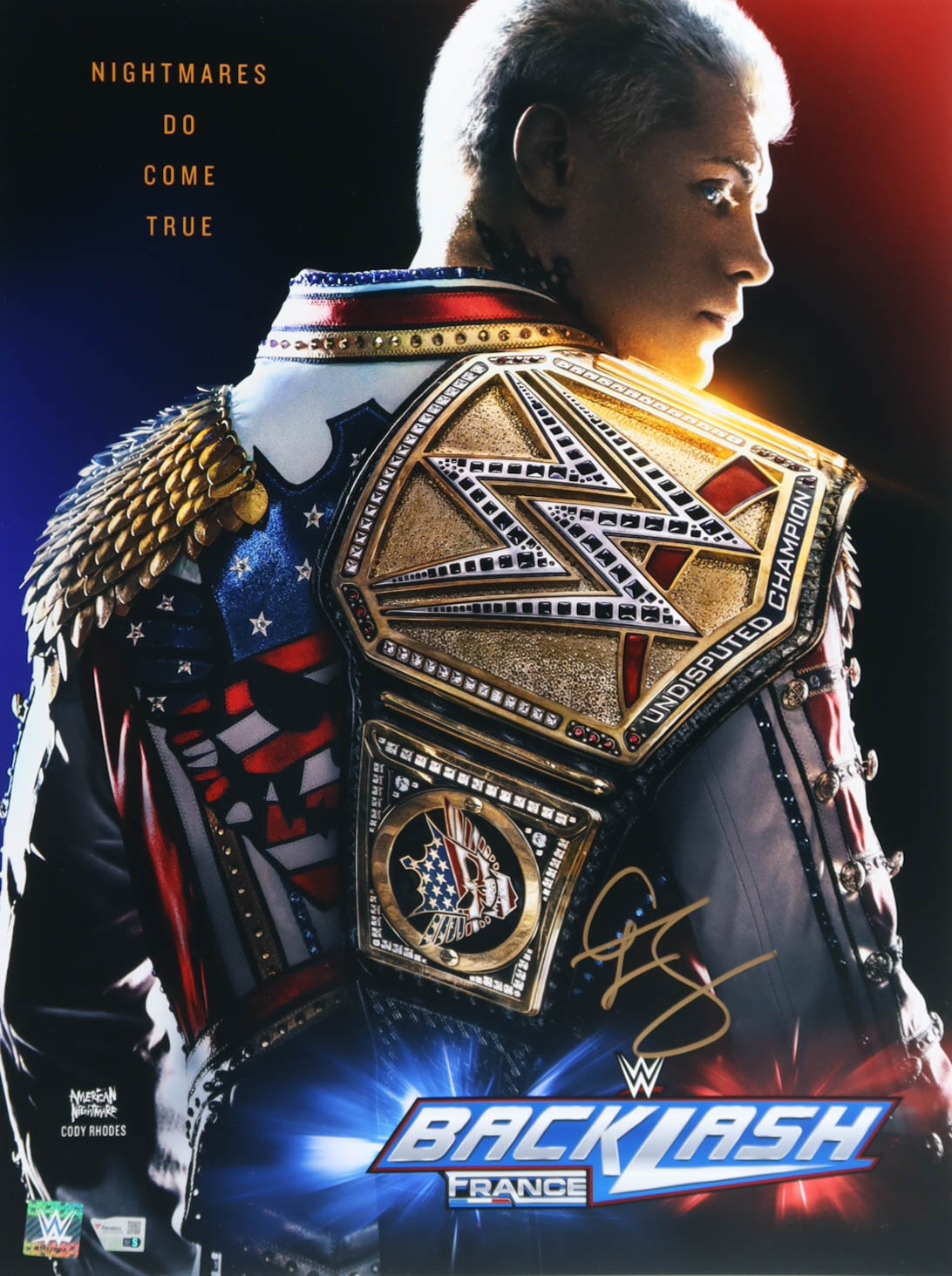 Photo measures 18" x 24" in size and has been hand-signed by Cody Rhodes.