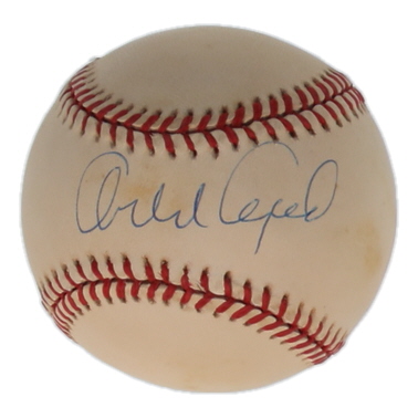 Rawlings Official National League baseball. Hand-signed by Orlando Cepeda (D. 2024, San Francisco Giants, HOF). Please note, the baseball is naturally toned and has stains.