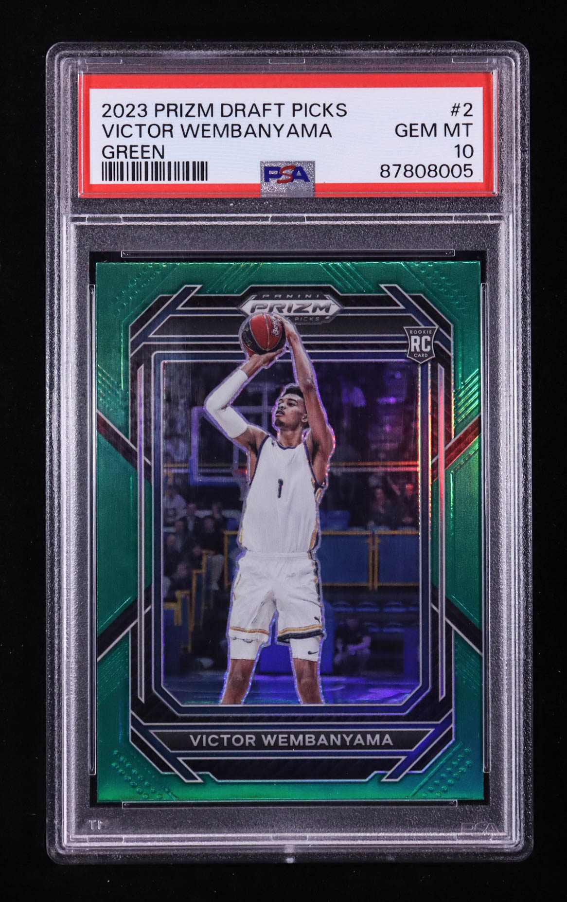 Victor Wembanyama 2023-24 Panini Prizm Draft Picks Prizms Green #2 RC (PSA 10)