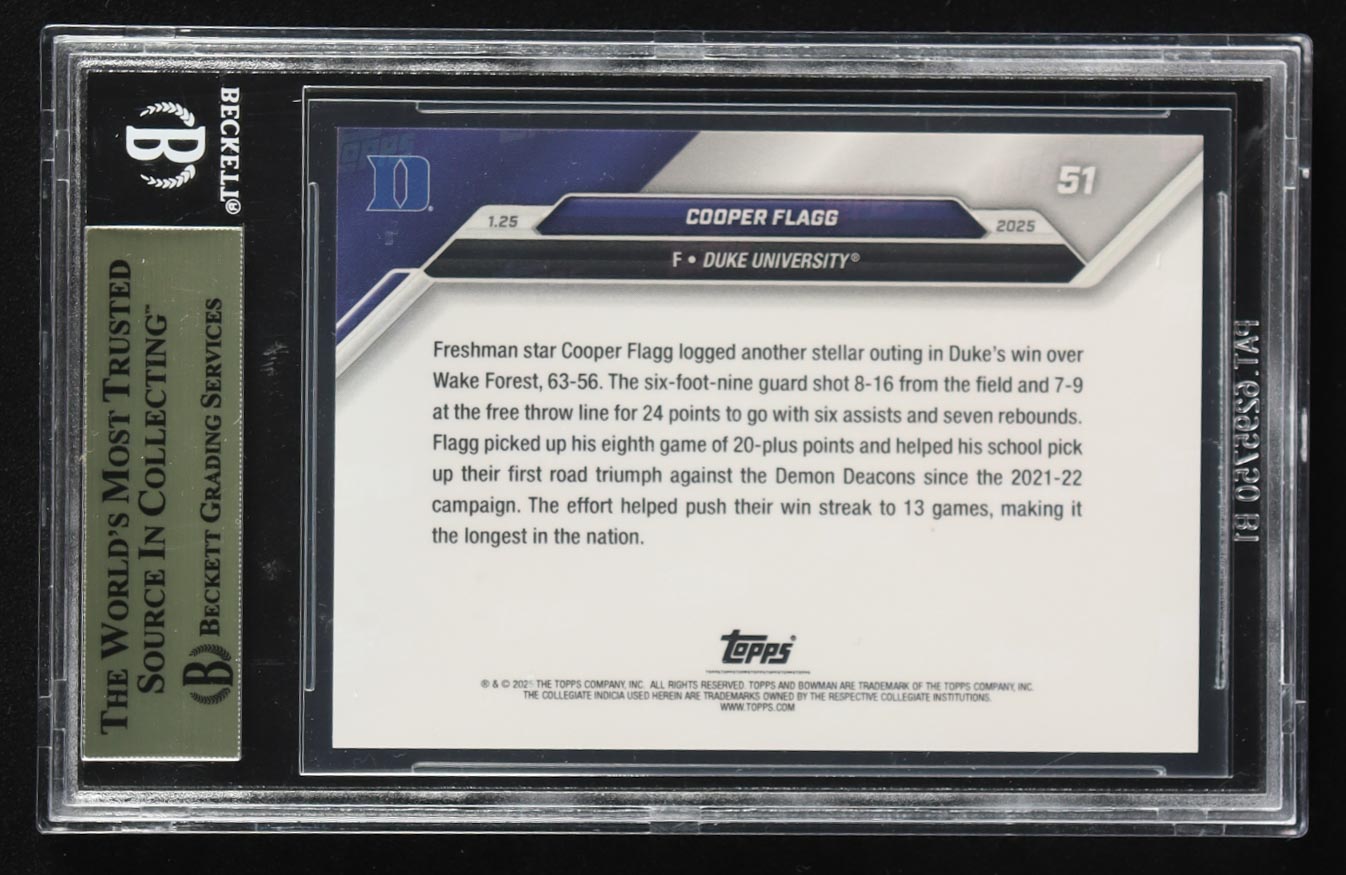 Cooper Flagg 2024-25 Bowman University Now #51 RC (BGS 10)