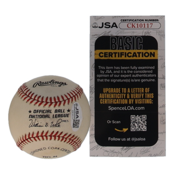 Rawlings Official National League Baseball. Hand-signed by Gaylord Perry (D. 2022, San Francisco Giants, HOF). Please note, the baseball is naturally toning and stained.