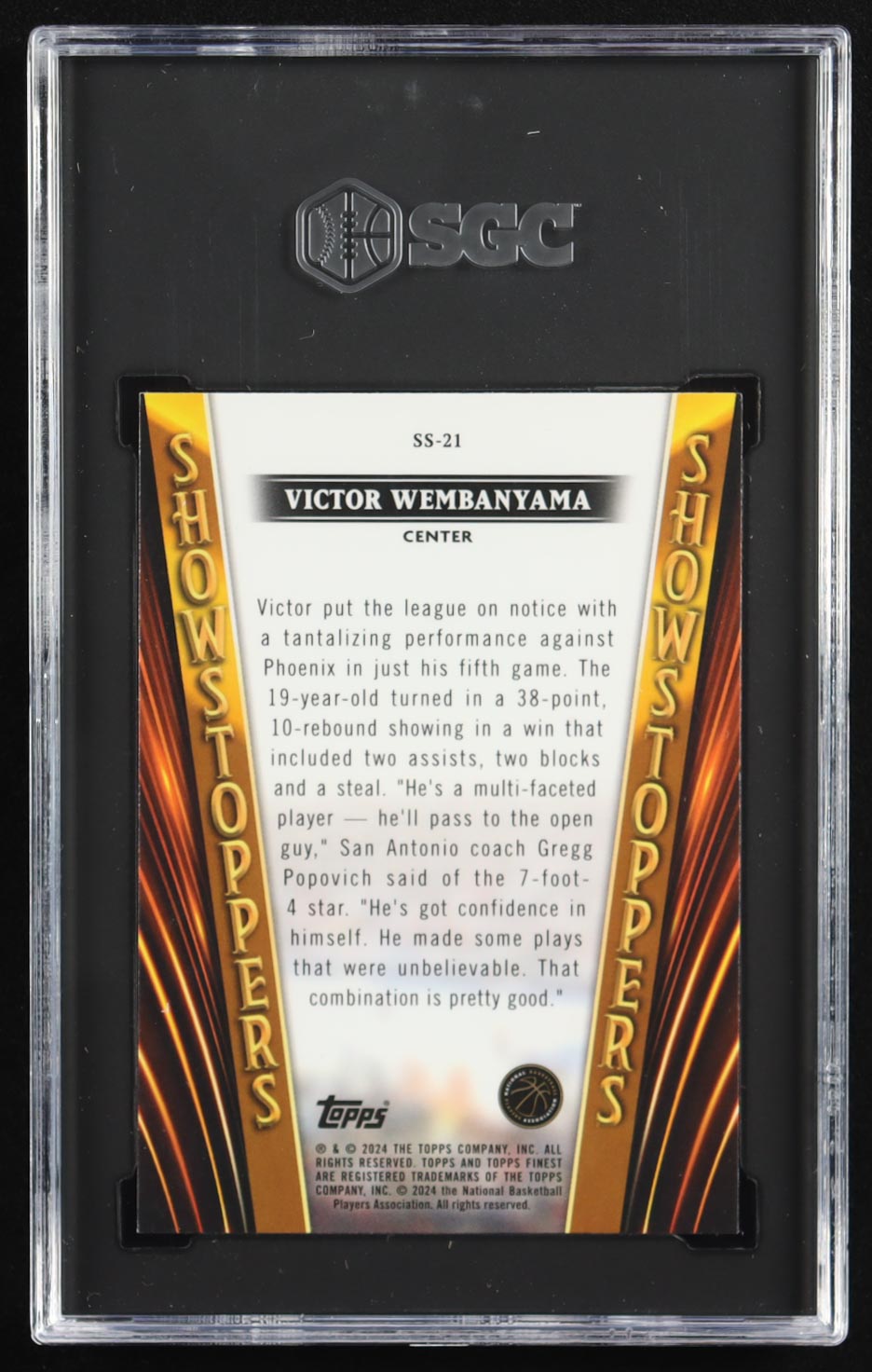 Victor Wembanyama 2023-24 Finest Showstoppers #SS21 RC (SGC 9.5)
